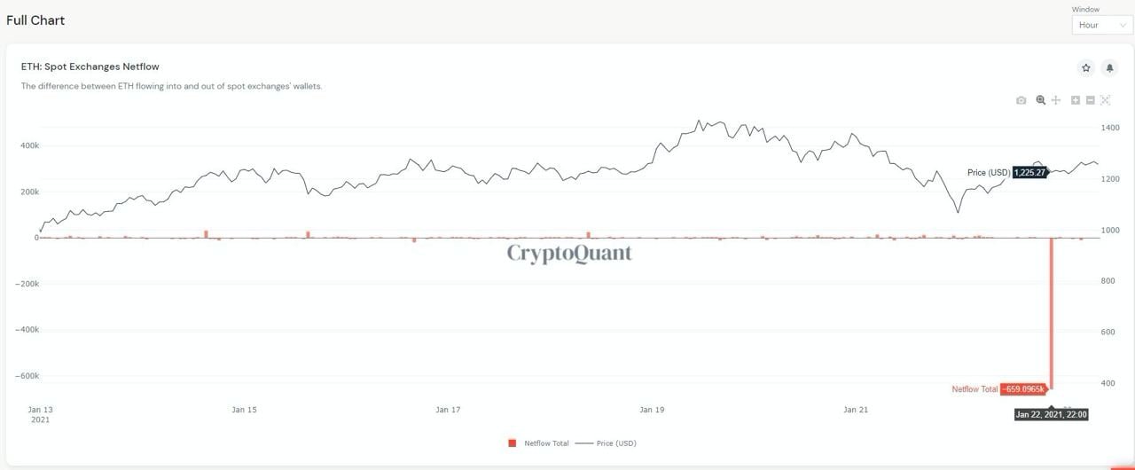 Indeed, investors came in droves as on Friday, the largest exchange withdrawal of ETH took place as large investors took the dip to buy ETH. According to data, a total of 659,000 units of ETH were withdrawn from spot exchanges in 1 hour on Friday as the price of ETH dropped to near $1,200.