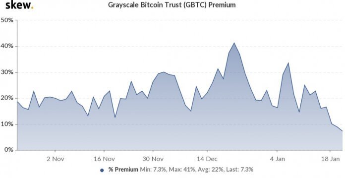 The Grayscale Bitcoin Trust Premium also posted a significant drop in the same period, suggesting that some of Grayscale investors may have sold their GBTC shares during the selloff. However, Grayscale did not sell any BTC, with the redemption possibly covered for by new investors.